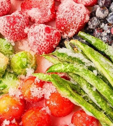 Frozen fruits and vegetables preserved with advanced techniques to ensure long-lasting freshness.